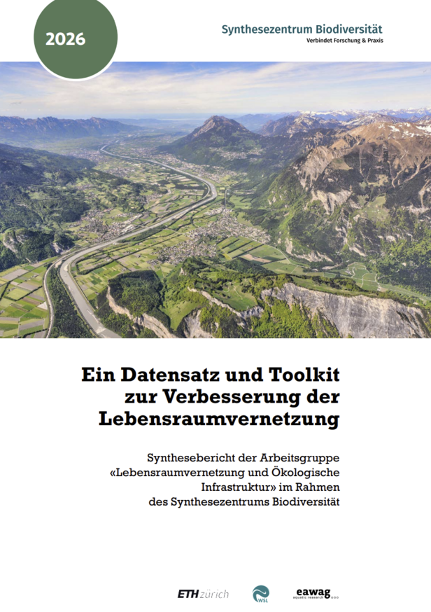 Richman S, Gnägi J, Widmer A, Camichel A, Lieberherr E, Pärli R, Ammann J, Baumann E, Berger S, Bühler C, Dajcar N, Donati G, Finkenbrink B, Fischer C, Fischer M, Fontana S, Gimmi U, Guntern J, Indermühle N, Käch H, Keller D, Keller R, Klein N, Landolt J, Marti F, Oehri J, Rutishauser E, Salminen J, Schmidt B, Wegscheider B, Widmer I, Wüest Karpati R (2026) Ein Datensatz und Toolkit zur Verbesserung der Lebensraumvernetzung. Synthesezentrum Biodiversität. doi.org/10.3929/ethz-c-000782986