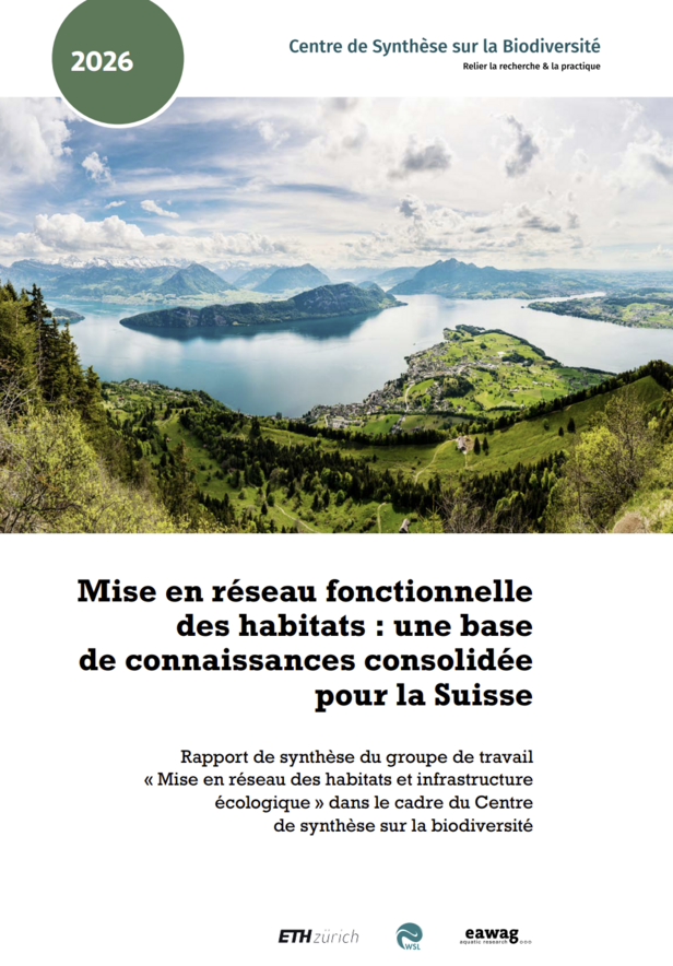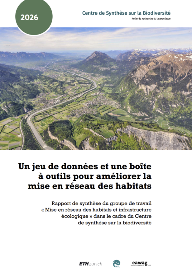 Richman S, Camichel A, Lieberherr E, Pärli R, Widmer A, Ammann J, Baumann E, Berger S, Bühler C, Dajcar N, Donati G, Finkenbrink B, Fischer C, Fischer M, Fontana S, Gimmi U, Guntern J, Indermühle N, Käch H, Keller D, Keller R, Klein N, Landolt J, Marti F, Oehri J, Rutishauser E, Salminen J, Schmidt B, Wegscheider B, Widmer I, Wüest Karpati R, (2026) Mise en réseau fonctionnelle des habitats : une base de connaissances consolidée pour la Suisse » Centre de synthèse sur la biodiversité. doi.org/10.3929/ethz-c-000785325